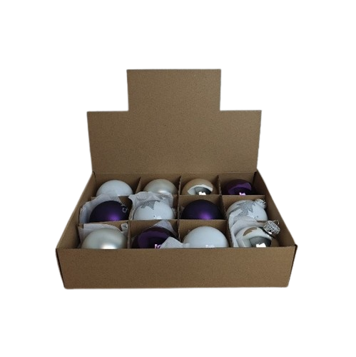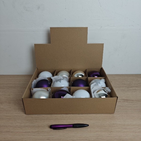 This set of glass Christmas balls consists of twelve beautifully finished ornaments with a diameter of about 7.5 cm. The collection contains a mix of plain, decorative and frosted Christmas balls, creating a stylish and varied whole that immediately gives every Christmas tree a luxurious and harmonious look. The frosted finish creates a subtle, matte effect that gently reflects the light and creates an elegant winter atmosphere. The combination with smoother and decorated variants creates a nice balance between tranquility and refinement.