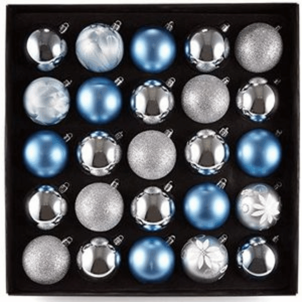 The balls are lightweight and therefore easy to process without the branches sagging. They are equipped with sturdy hanging eyelets, so they can be used immediately. The mix of shades in this set ensures that they are effortless to combine with existing Christmas decorations or themes, ranging from classic to modern. This versatile ball set offers enough pieces to richly decorate a tree and at the same time create a balanced overall picture. Whether you choose a subtle style or a striking eye-catcher, this set of 25 balls forms an excellent basis for a festive and tasteful decoration during the holidays.