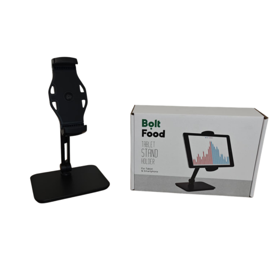 The Bolt Food tablet stand holder is a sturdy and practical solution for safely placing tablets and smartphones on a desk, counter or workplace. Thanks to the robust combination of ABS and aluminum alloy, this stand offers excellent stability even during intensive daily use. The weighted base of 300 x 170 mm ensures that the device stays firmly in place, ideal for use in hospitality, retail or office environments.