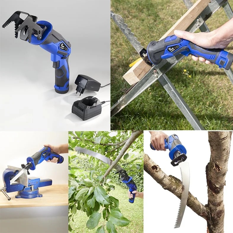 This reciprocating saw runs on an efficient 12V lithium-ion battery, giving you complete freedom of movement without annoying cords. The powerful motor offers excellent cutting performance in wood, plastic and light metals. The saw blades are easy and quick to change thanks to the practical quick-change system.