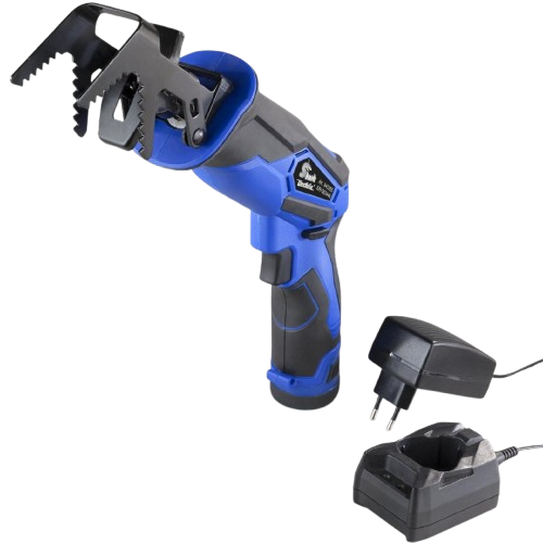 The Westfalia 12V Li-Ion ‘Shark’ cordless reciprocating saw is a powerful and compact saw that is ideal for various sawing jobs in the home, garden and workshop. Thanks to the ergonomic design and non-slip handle, the saw fits comfortably in the hand, which allows for long-term fatigue-free work. The innovative ‘Shark’ head ensures a stable grip on the material and prevents slipping during sawing.