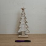 This wooden Christmas tree decoration with a size of approximately 30 x 11 x 5 cm is a beautiful addition to any festive decor. Thanks to its slim and compact design, this tree fits effortlessly into a variety of spaces, such as windowsills, side tables, fireplaces or desks. The use of high-quality wood gives the decoration a natural and warm look, making the piece fit well with various interior styles, including Scandinavian, rural, classic and modern.
